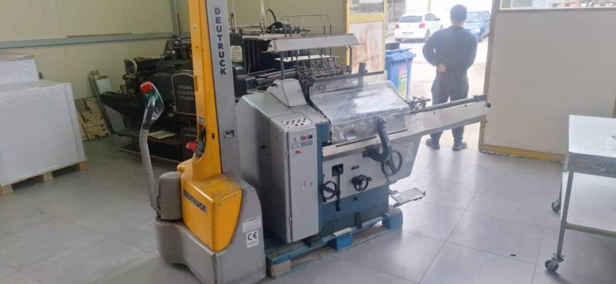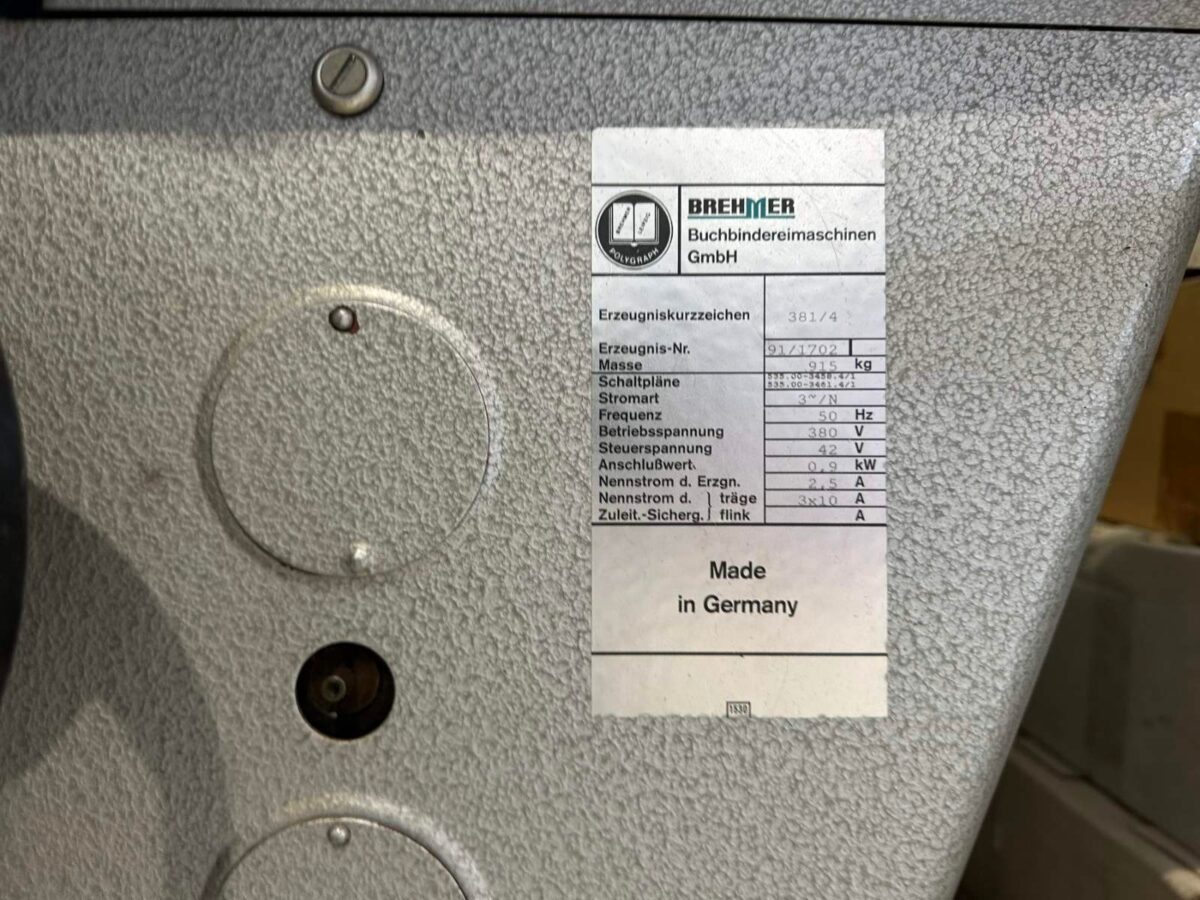 Polygraph 381/4 BooK Sewing Machine Manufacturer: Polygraph Brehmer Size: (120 x 70) – (355 x 275) mm Weight: ~915 kg Power Req.: 380 V / 50 Hz Installed power: 0,9 kW Used space: 2.200 x 1.600 x 1.500 mm Maximal productivity : 85 fascicles / minute