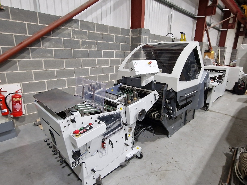 Continous Round Pile Feeder, 4 Buckles, Perf/Creasing Shaft, 2 Electronic Knives, Digital Control, Air Compressor, 16 Page Machine