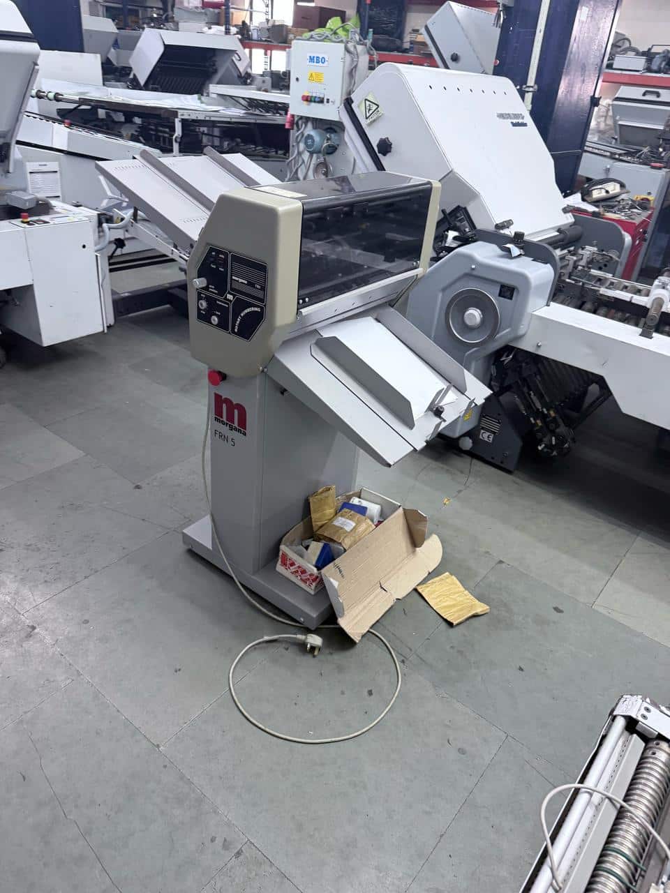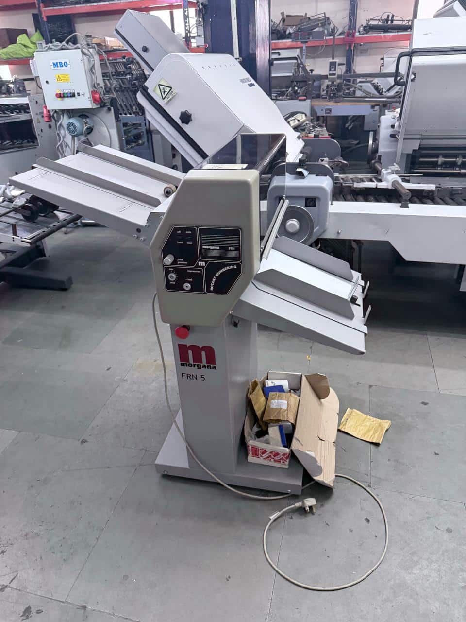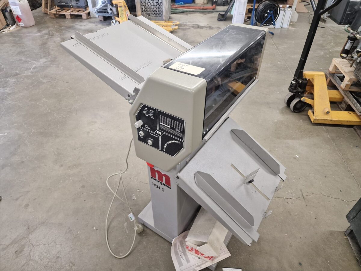 MORGANA FRN 5 NUMBERING MACHINE YEAR CIRCA 1996 MAX SHEET SIZE: 46 x 46 CM # MAX SPEED: UP TO 5000 SPH WITH TWO NUMBERING BLOCKS # TWO PERF / CREASING WHEELS AUTOMATIC FRICTION FEEDER # COMPLETE WITH ALL TOOLS & BOOKS IN EXCELLENT WORKING ORDER