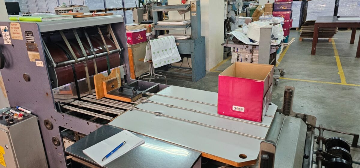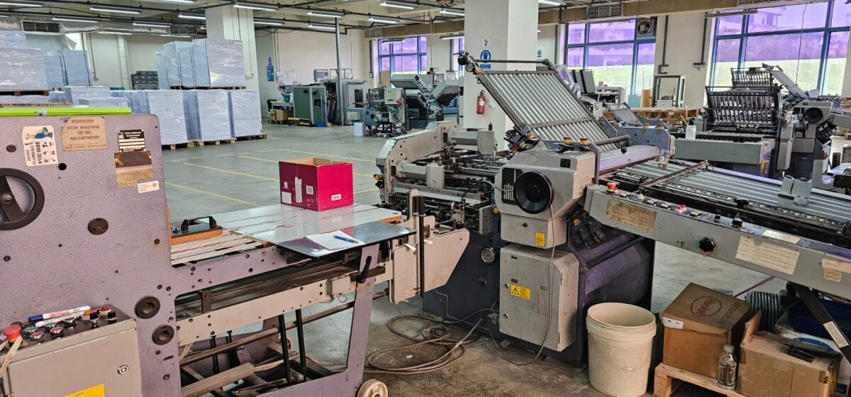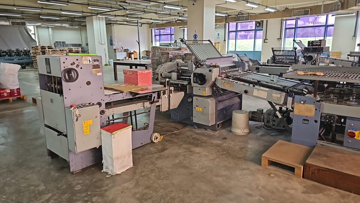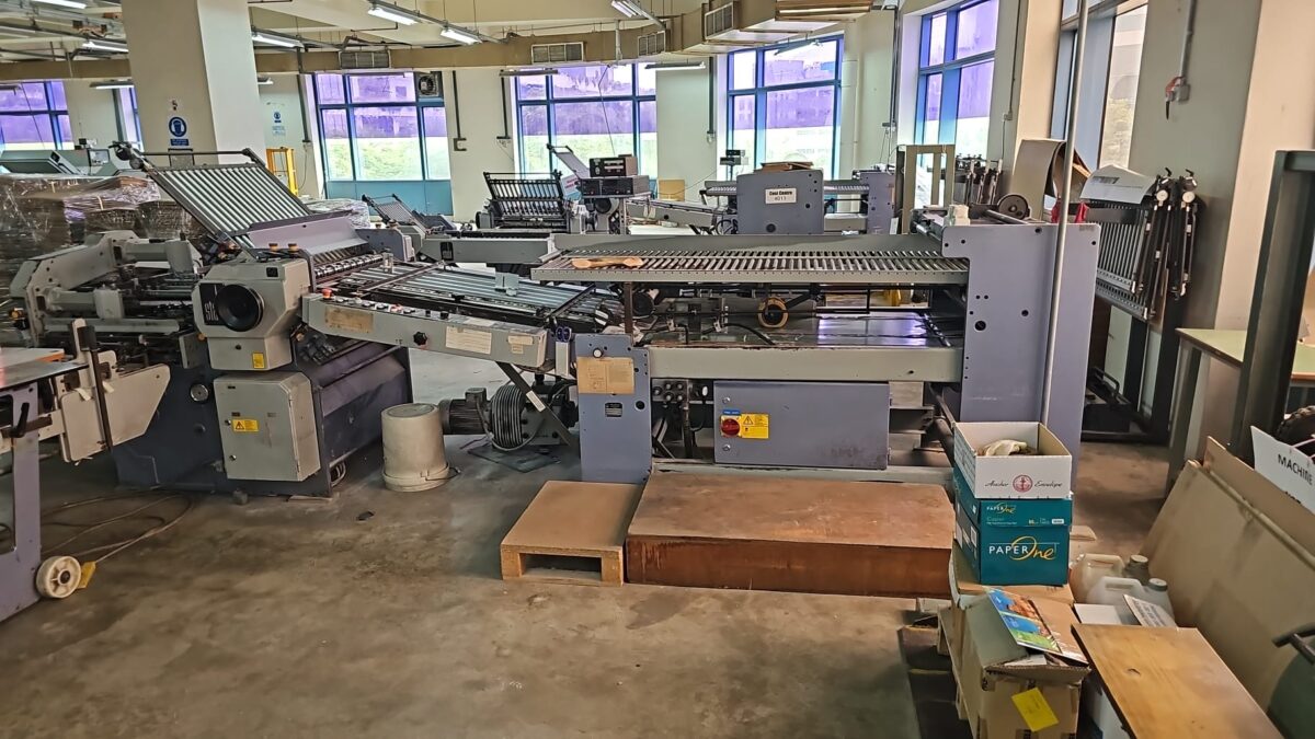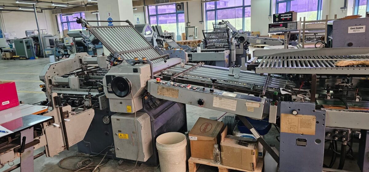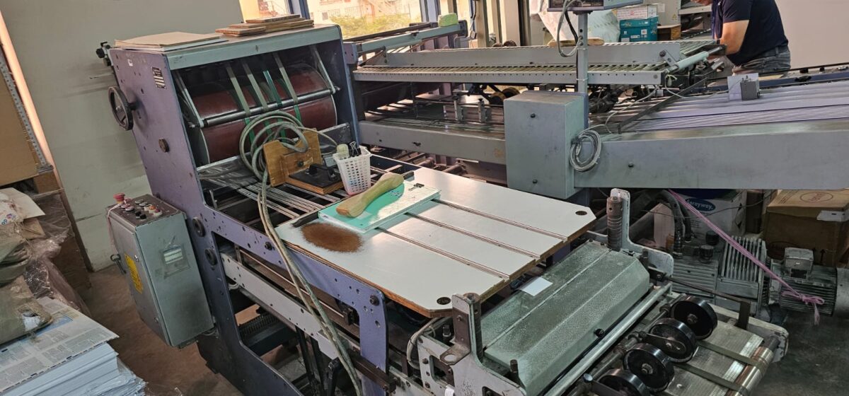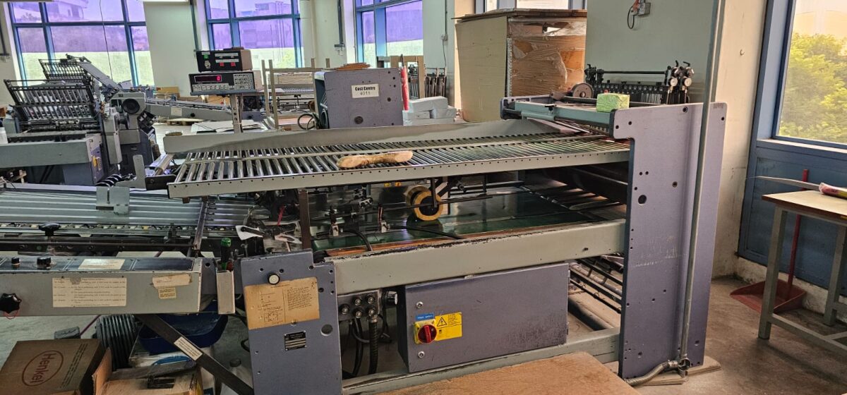 Continous Round Pile Feeder, 4 Buckles, Perf/Creasing Shaft, 2 Electronic Knives, Air Compressor, 16 Page Machine