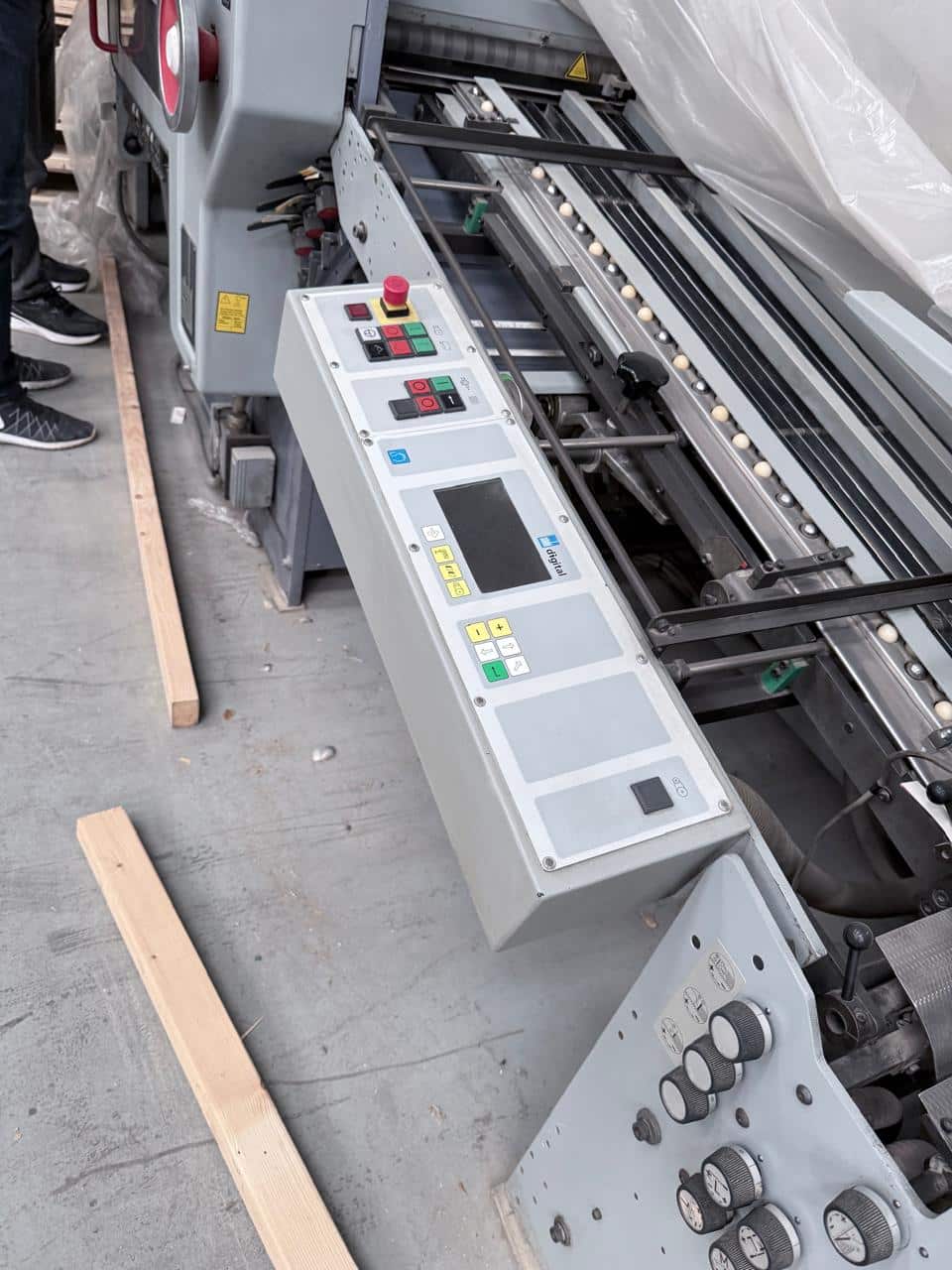 Continous Round Pile Feeder, 6 Buckles, Perf/Creasing Shaft, 2 Electronic Knives, Digital Control, Air Compressor, 16 Page Machine