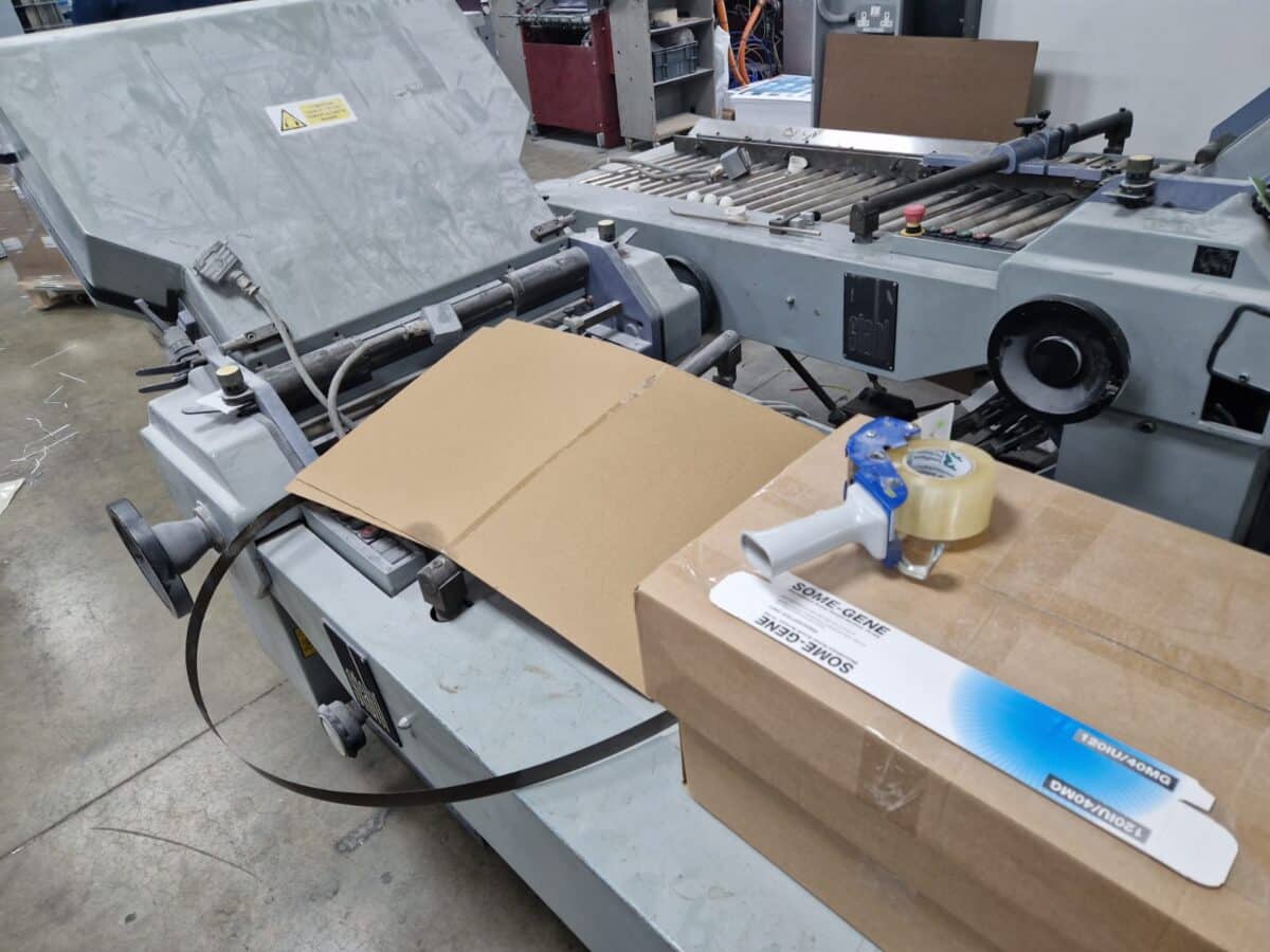 Flat Pile Feeder, Tremat Head, 4 Buckles with Perf/Creasing Shaft on first fold, 4 Buckles with Perf/Creasing Shaft on second fold, 2 Buckles on third fold, Air Compressor, 16 Page Machine