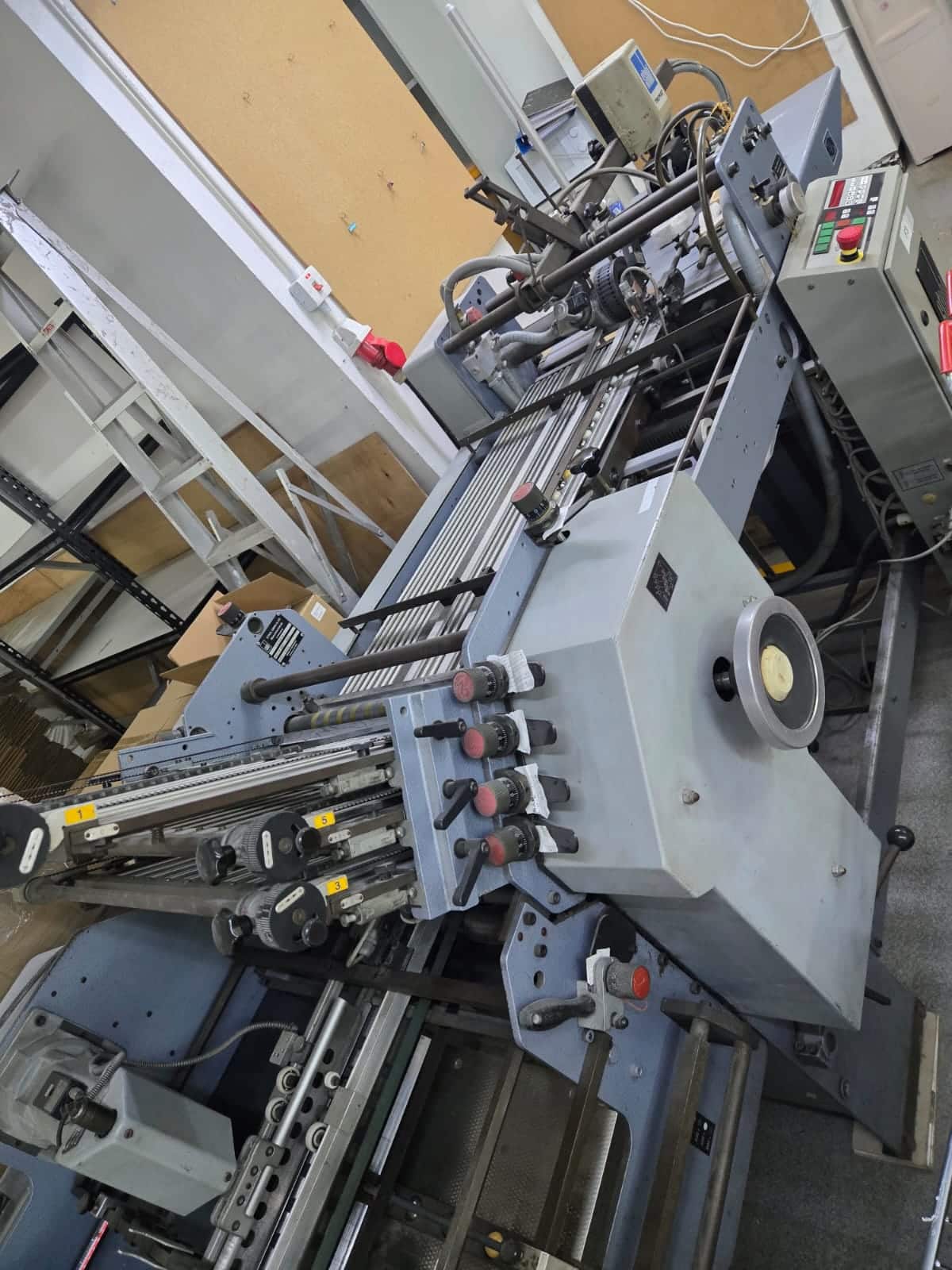 Buckle folding machine with 6 buckle plates, 520 mm working width, and speeds up to ≈200 m/min for high-precision small to medium format folding.